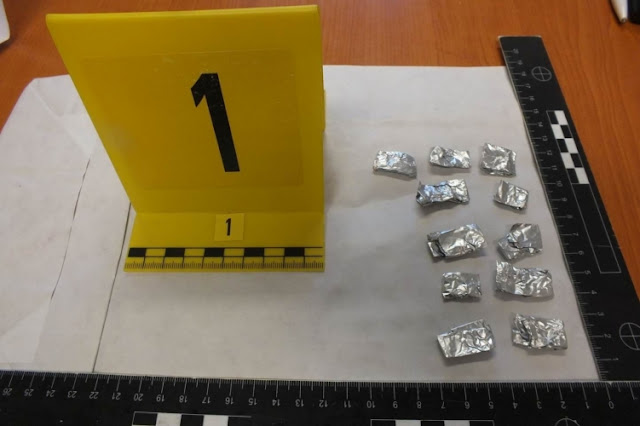 A rendőrség közleménye szerint az autó és a férfi ruháinak átvizsgálása során az egyenruhások összesen 14 kis, alufóliás csomagot, továbbá egy darab barna anyagmaradvánnyal szennyezett szívószálat találtak. Azonnal felmerült annak a gyanúja, hogy a pakkok tiltott szert tartalmaznak. Azok kibontása után a hatóság tagjai fehér, kristályos, droggyanús anyagra leltek, amely a bűnügyi technikus által elvégzett gyorsteszten metadonra pozitív jelzést mutatott. A gyanú be is igazolódott, ugyanis a férfinál talált bruttó 24,5 gramm anyag kábítószernek minősül.